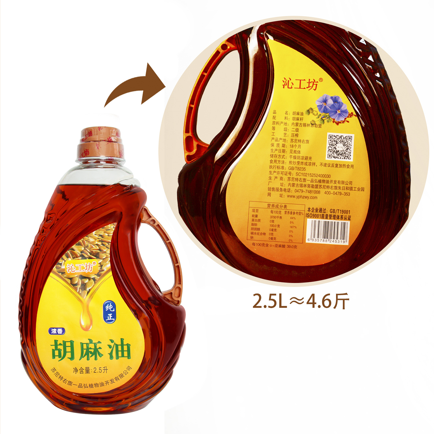 亚麻籽油 1.8L(塑料桶)