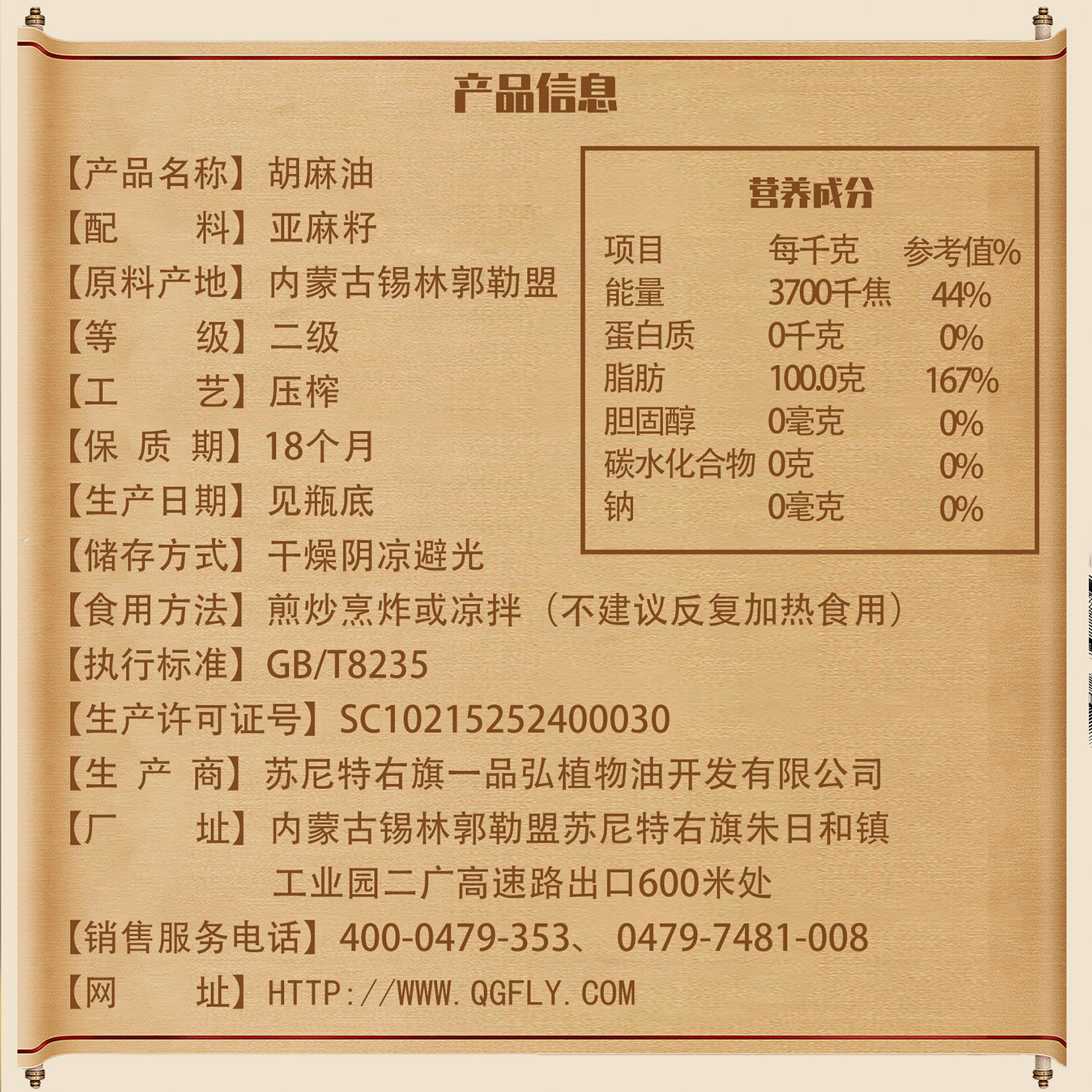 小罐亚麻籽油